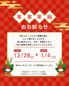 旧年中は「株式会社アーキサプライ」をご愛顧いただき、誠にありがとうございました。
